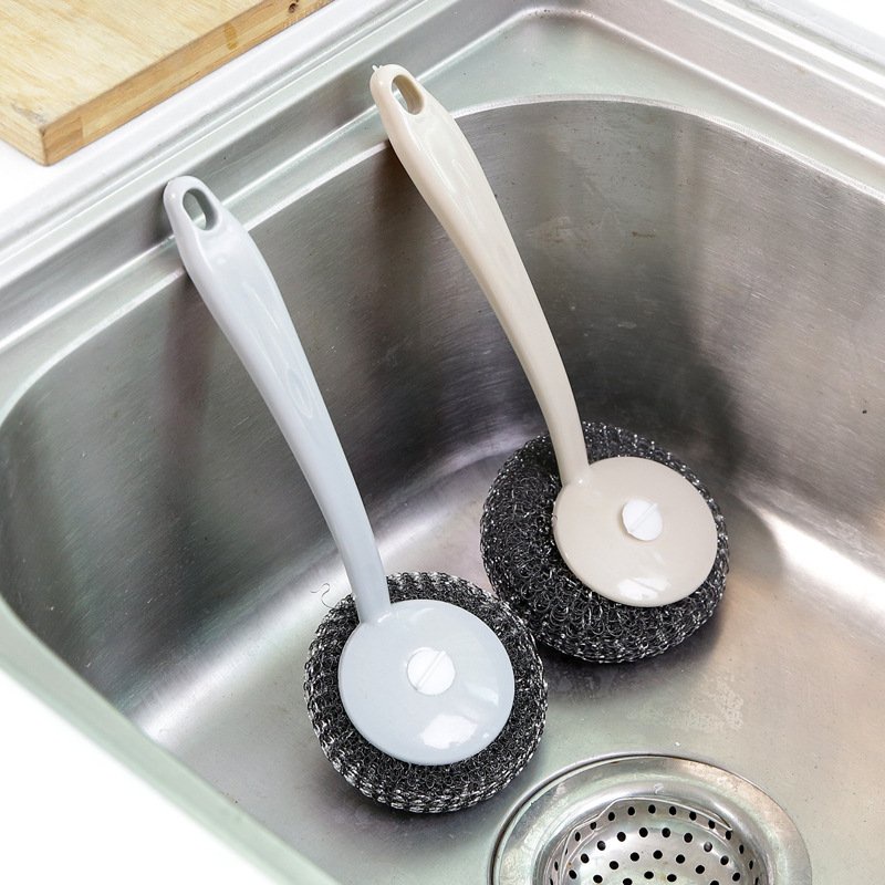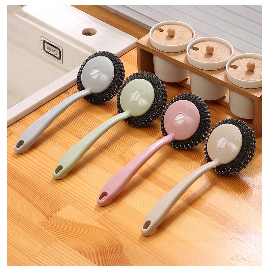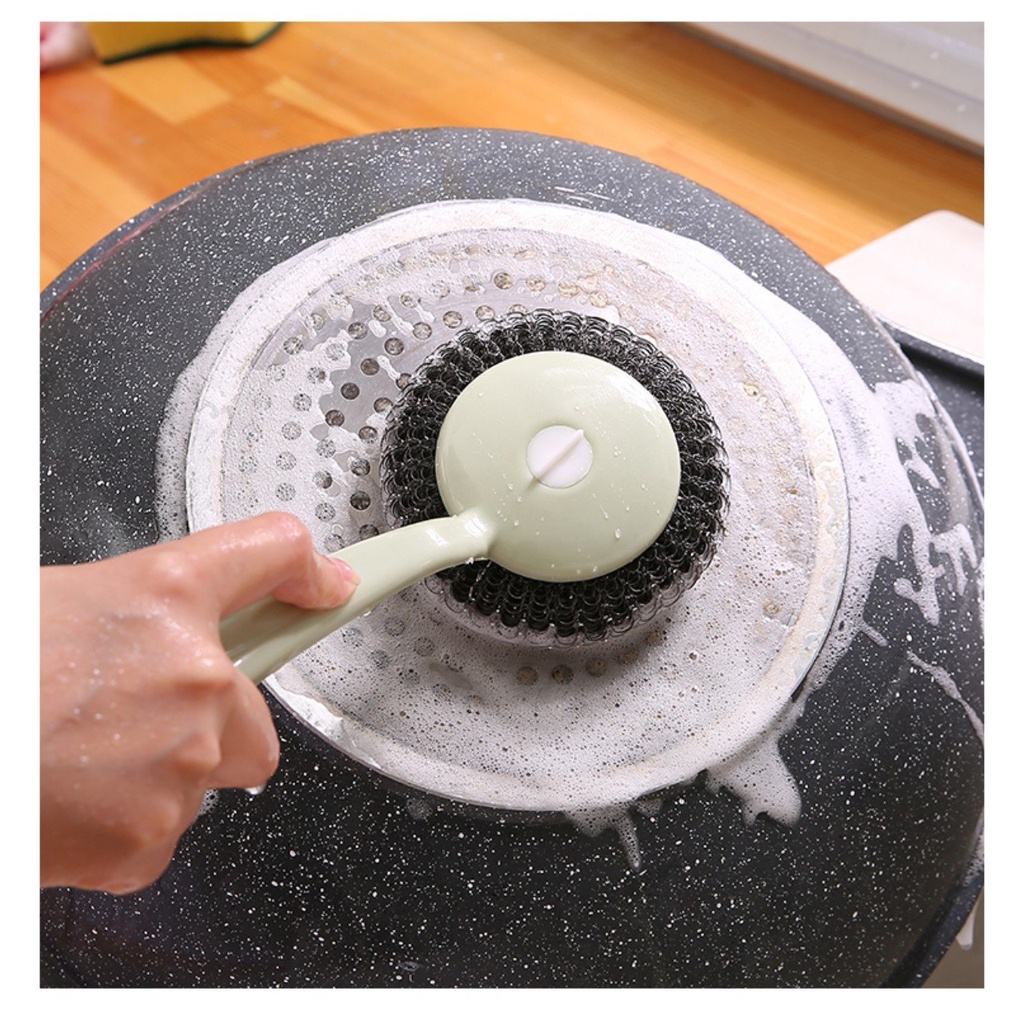 Nhà cửa & Đời sống > Dụng cụ chăm sóc nhà cửa > Miếng bọt biển, miếng chà vệ sinh || Cây Cọ Xoong Nồi Búi Sắt Có Tay Cầm Cán DàiCòn hàng