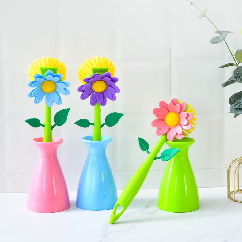 Nhà cửa & Đời sống > Dụng cụ chăm sóc nhà cửa > Bàn chải vệ sinh || Cây cọ xoong nồi chén đĩa hình bông hoa - Bàn chải cọ rửa nhà bếp đa năng có hộp đựng BoremartCòn hàng