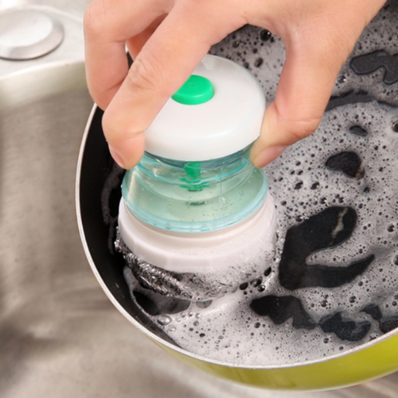 Sản phẩm Dụng Cụ Cọ Rửa Chén Xoong Nồi Chảo Có Bình Đựng Xà Phòng Tiện Lợi An Toàn Da Tay giúp việc nội trợ của chị em phụ nữ trở nên dễ dàng, nhanh chóng hơn, cách sử dụng đơn giản, tiện dụng, giúp bảo vệ xoong nồi, dụng cụ nhà bếp - không làm trầy xước các lớp tráng men trên xoong nồi, không gây hại da tay.THÔNG TIN SẢN PHẨM: