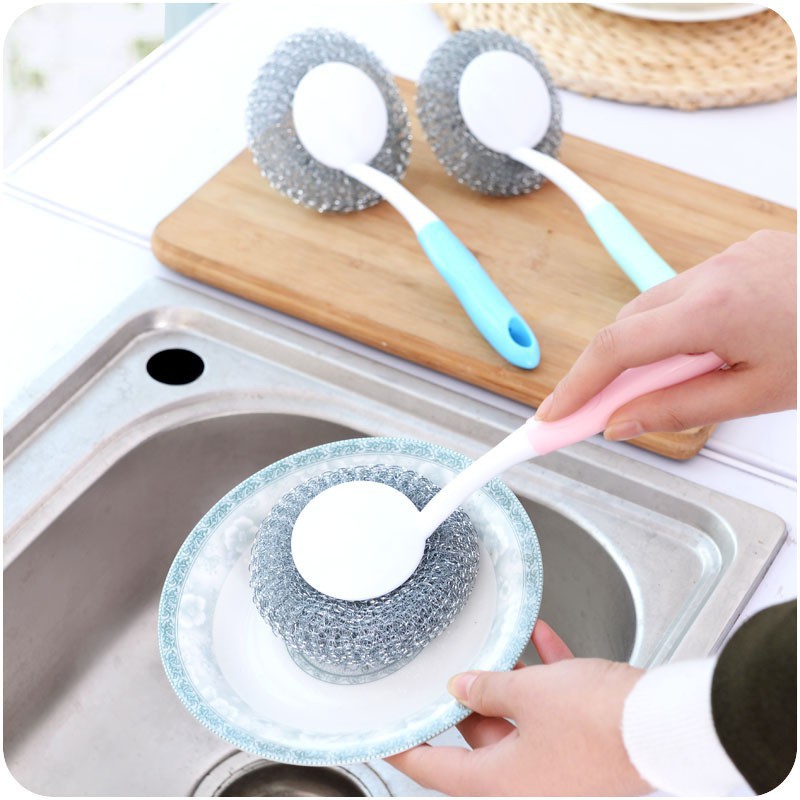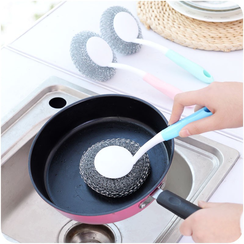 Nhà cửa & Đời sống > Dụng cụ chăm sóc nhà cửa > Bàn chải vệ sinh || Cọ xoong nồi có cán tay cầm, đầu cọ làm bằng sợi inox tiện dụng, đánh sạch mọi loại vết bẩn (Giao màu ngẫu nhiên)Còn hàng