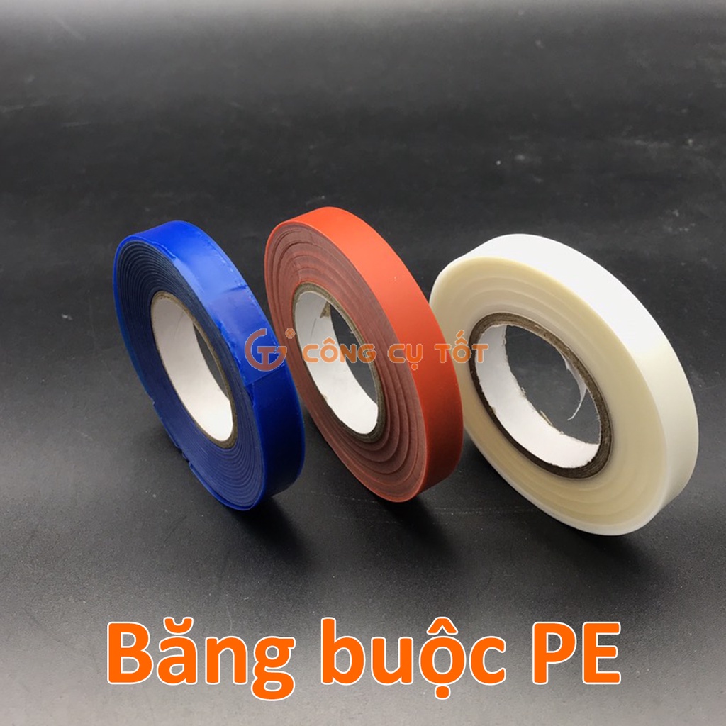 Băng buộc cành cây làm từ màng nhựa PE giúp cho mối buộc cành các ây dây leo nho, cà chua, hoa hồng vào giá đỡ vừa thẩm mỹ, vừa có khả năng co dãn khi cây lớn. Ngoài ra, băng cũng có thể lắp vào các dụng cụ buộc cành cây chuyên dụng.Số lượng: 20 cuộn.