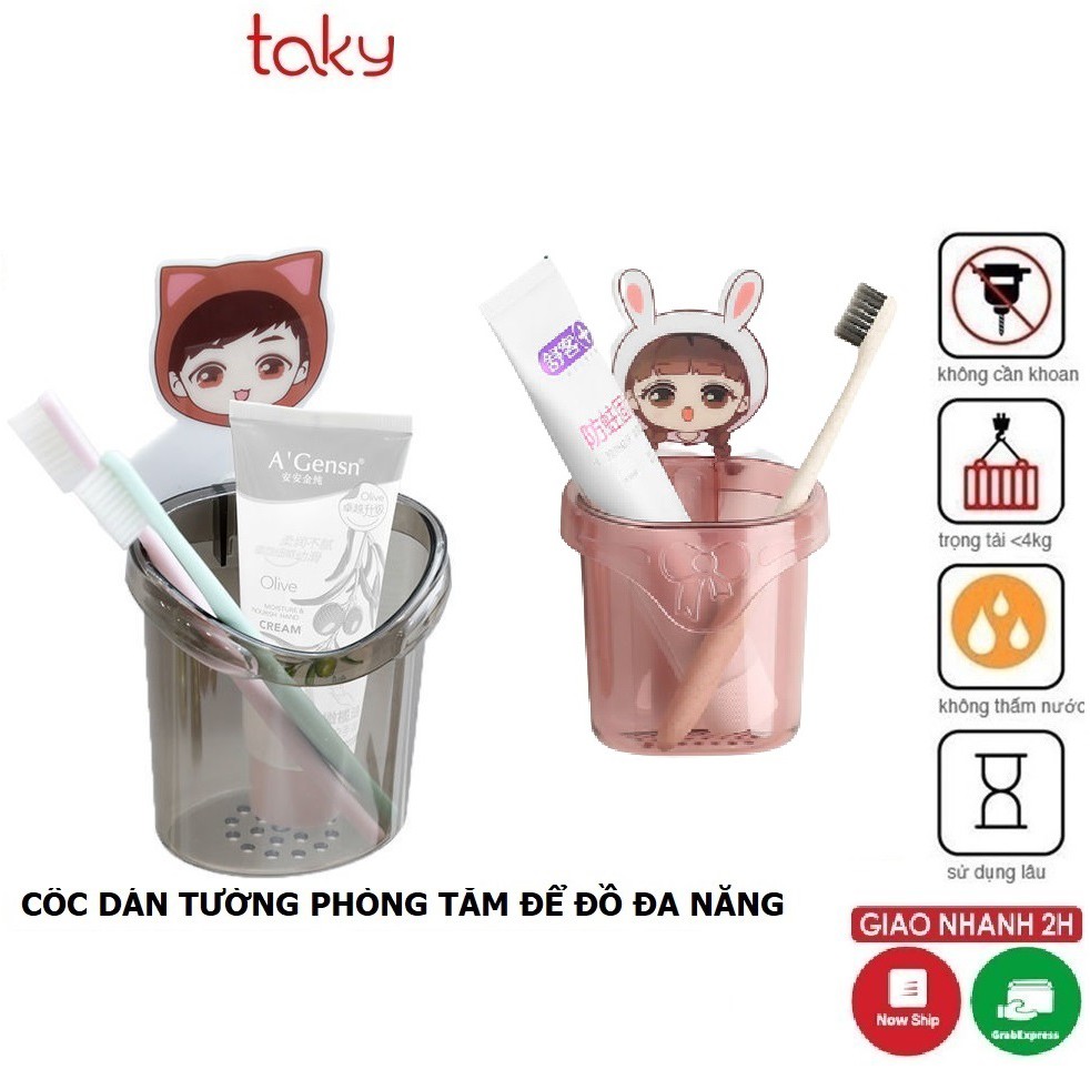 Cốc Bé Trai - Bé Gái - Taky, Dán Tường Để Đồ Đa Năng, Để Bàn Chải - Kem Đánh Răng Tiện Dụng Cho Phòng Tắm, 4065