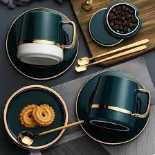 Nhà cửa & Đời sống > Dụng cụ nhà bếp > Dụng cụ pha trà, cà phê || Cốc cà phê sứ xanh cổ vịt phong cách Bắc Âu tặng kèm đĩa và thìaCòn hàng