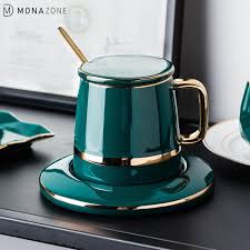 Giới thiệu Cốc cà phê sứ xanh cổ vịt phong cách Bắc Âu tặng kèm đĩa và thìa