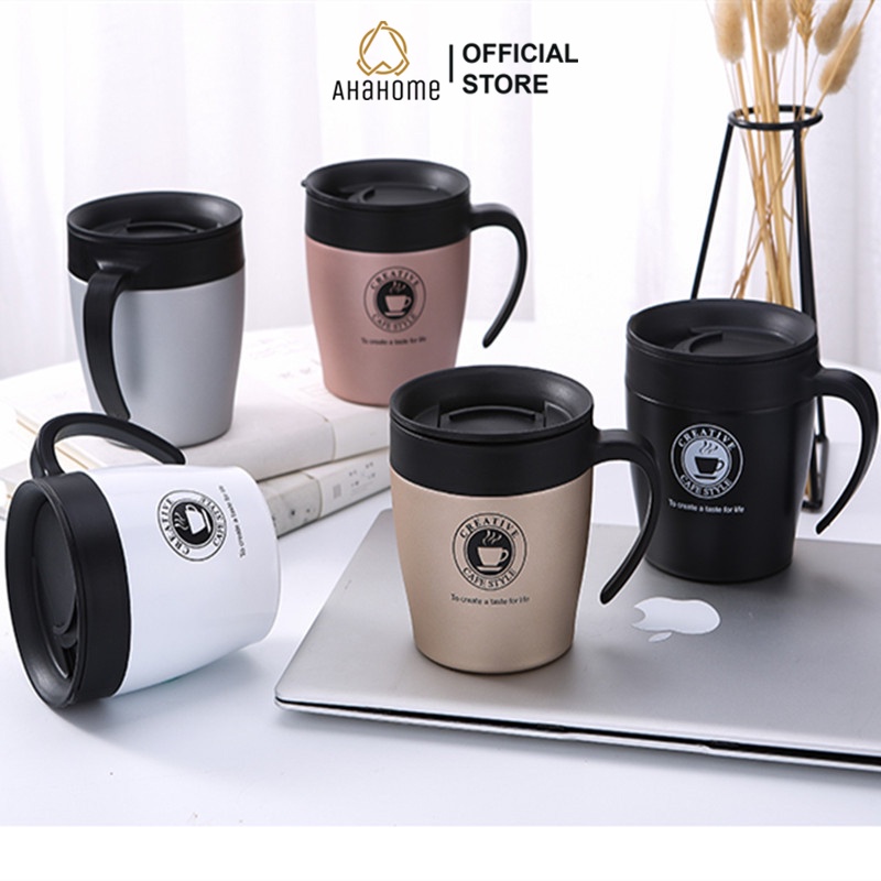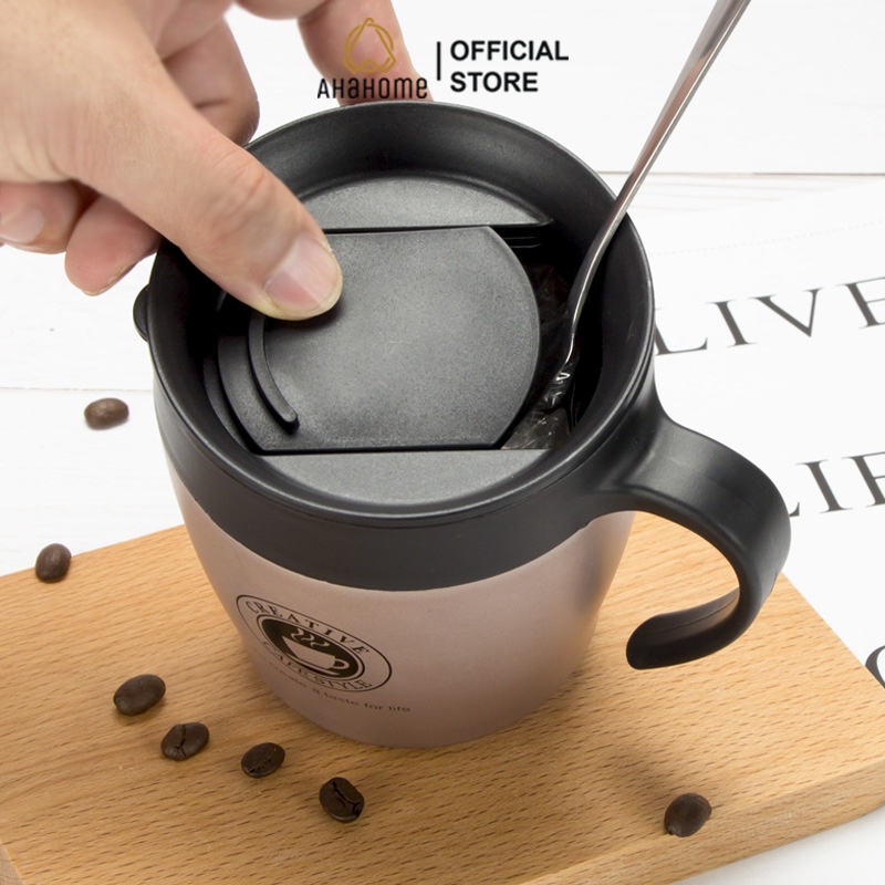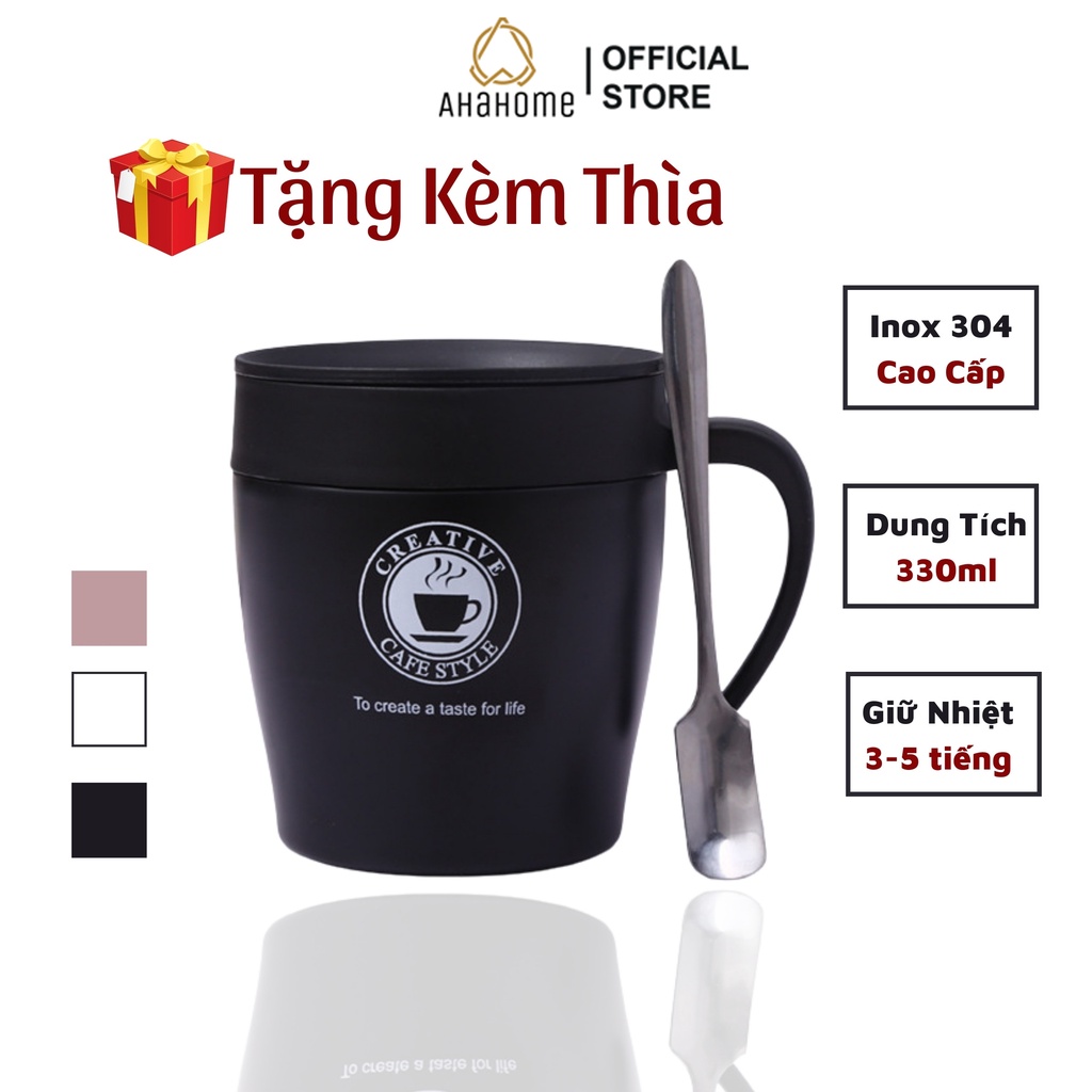 Nhà cửa & Đời sống > Dụng cụ nhà bếp > Dụng cụ pha trà, cà phê || Cốc Cafe Giữ Nhiệt AHAHOME 330ml Chất Liệu Inox 304 Nhỏ Gọn Có Tay Cầm Sang Trọng [Tặng Kèm Thìa]Còn hàng