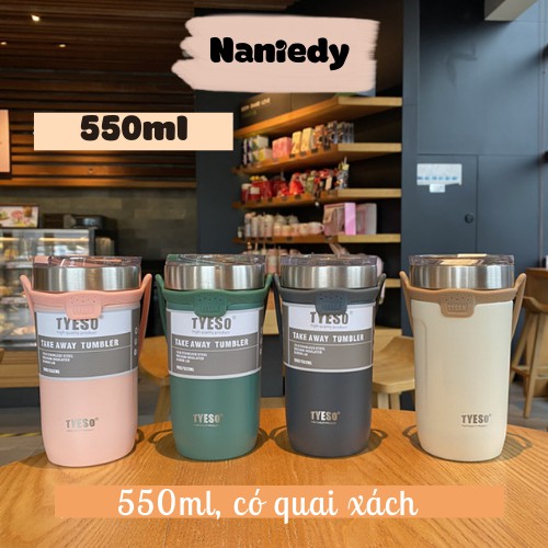 Dung tích Cốc Cafe Giữ Nhiệt Ly Uống Nước Coffee Inox 304 Cao Câp 550ml có nắp có quai xách phù hợp với mọi nhu cầu sử dụng cho cả người lớn và trẻ em.
