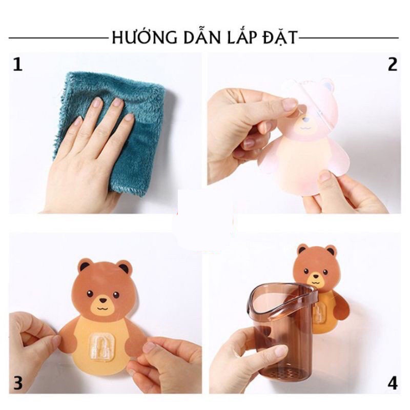 Nhà cửa & Đời sống > Đồ dùng phòng tắm > Kệ đựng bàn chải, kệ nhả kem đánh răng || Cốc cắm bàn chải kem đánh răng dán tường hình gấu có lỗ thoát nướcCòn hàng