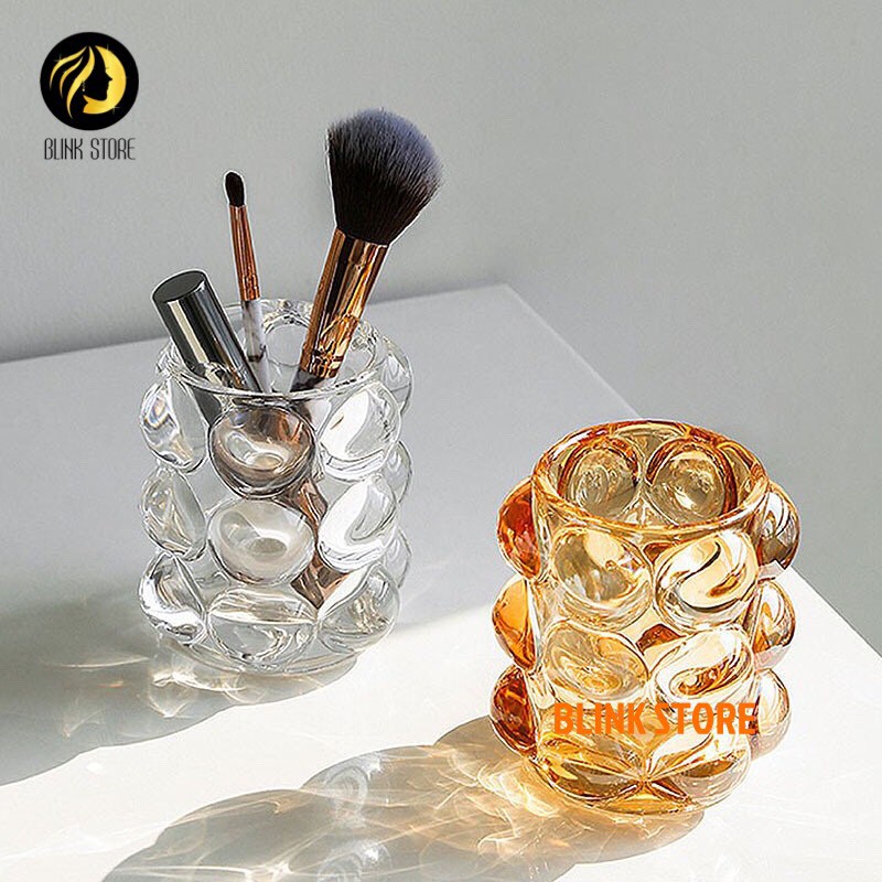 Cốc cắm cọ trang điểm thủy tinh đặc khối, dày dặn, sang trọng, tinh tế ( 3 màu trong suốt, màu ghi xám, ánh vàng)