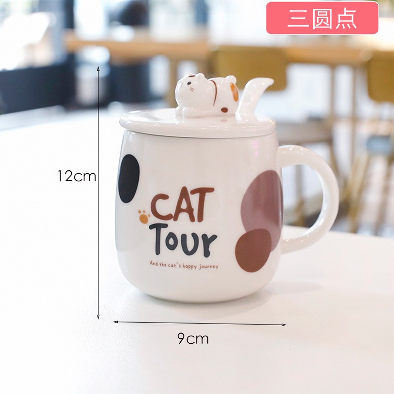 Cốc CAT sứ uống nước cốc gốm sứ cao cấp hình mèo lười cute có nắp đậy uống nước kèm thìa cafe
