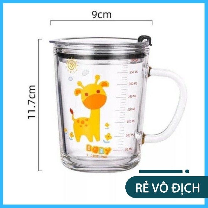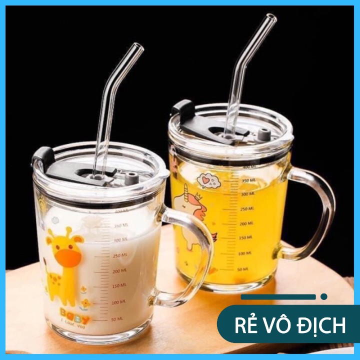 👉Cốc pha sữa, ly pha sữa chất liệu thủy tinh dày dặn in hình cá tính, dễ thương đẹp mắt, thân cốc có chia vạch giúp bạn kiểm tra lượng nước, sữa trong cốc.Cốc thiết kế có nắp đậy, trên nắp có lỗ để cắm ống hút tiện lợi, quai cầm chắc chắn, sử dụng với nhiều mục đích khác nhau, thích hợp uống trà sữa, nước ngọt, nước cam, dùng ở các quán cà phê, cũng như các mẹ dùng pha sữa cho bé rất tiện.