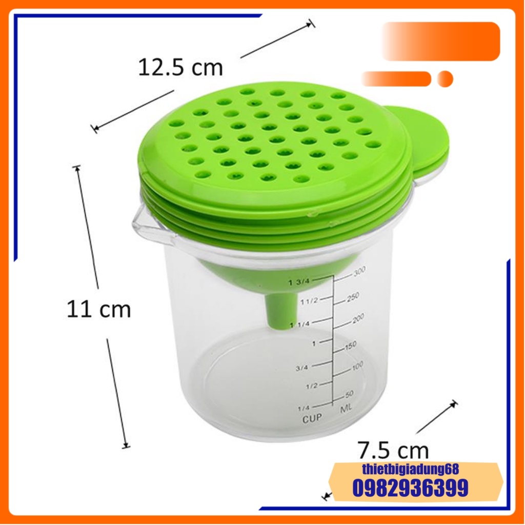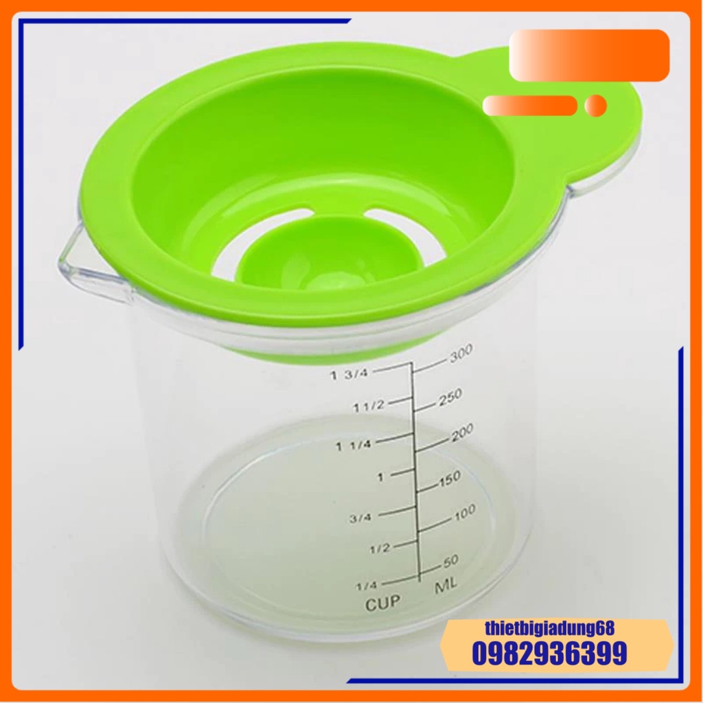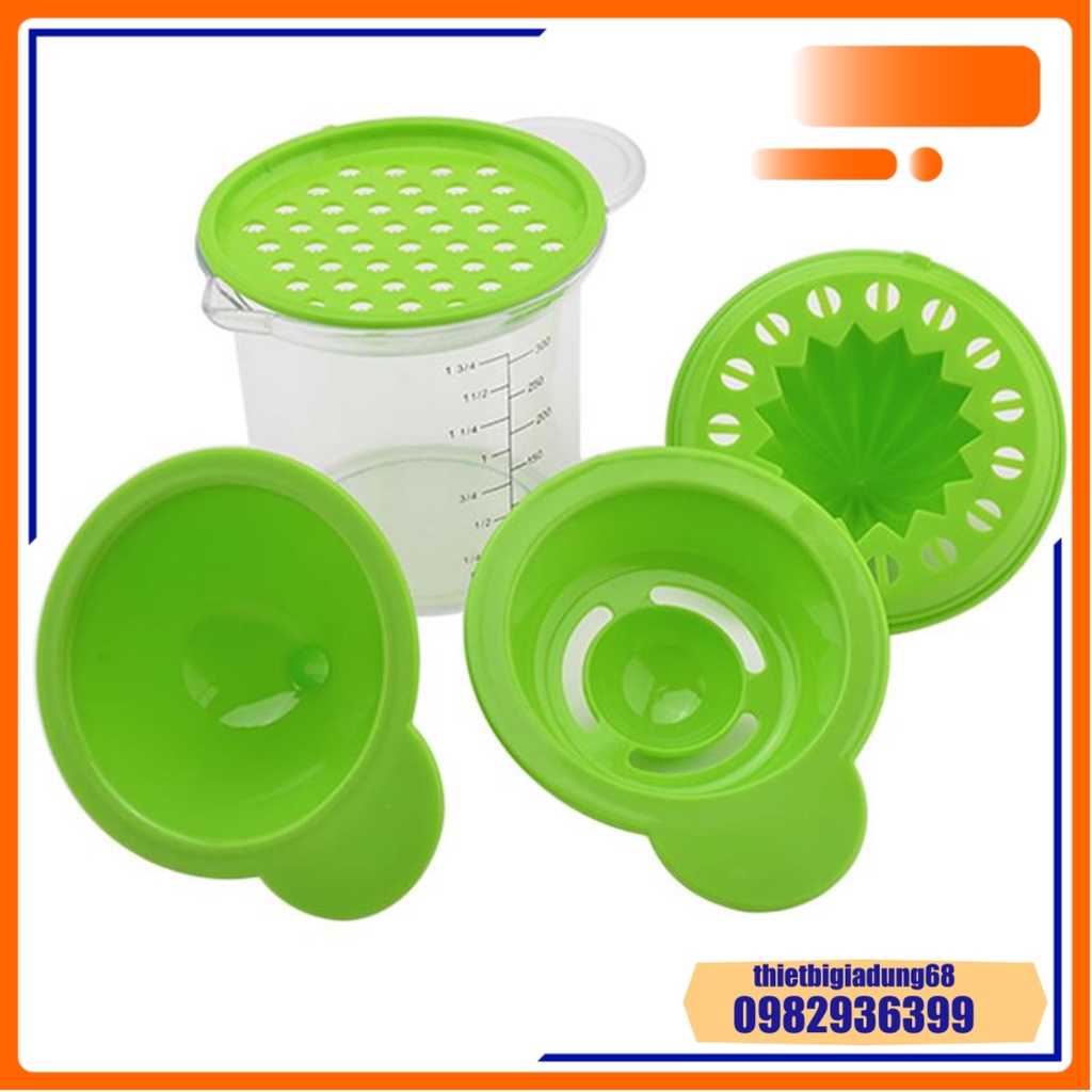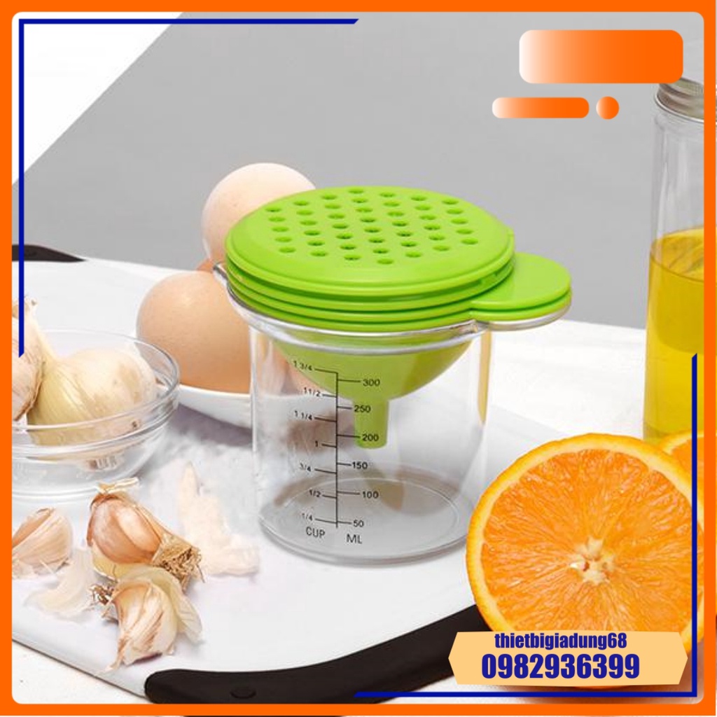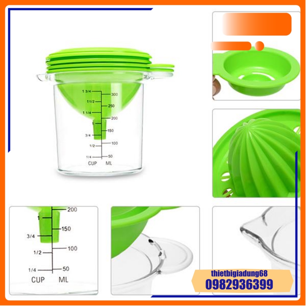 Cốc Chia Vạch Nhà Bếp Đa Năng 300ml 5in1 Định Lượng, Vắt Cam, Lọc Trứng, Phễu Lọc, Mài Rau Củ Quả, Dụng Cụ Nhà Bếp