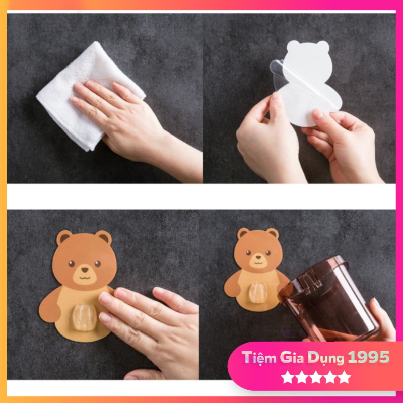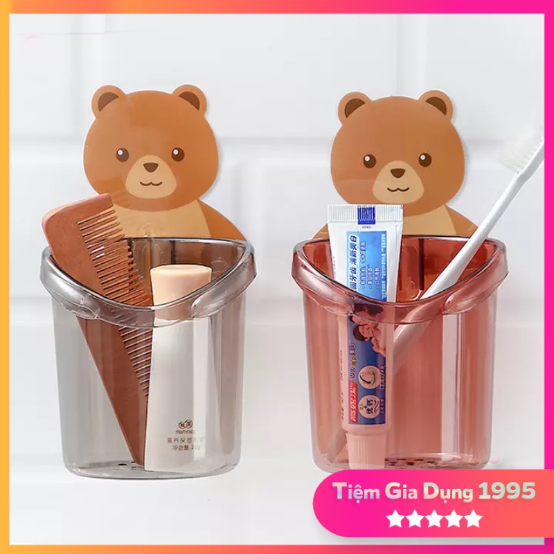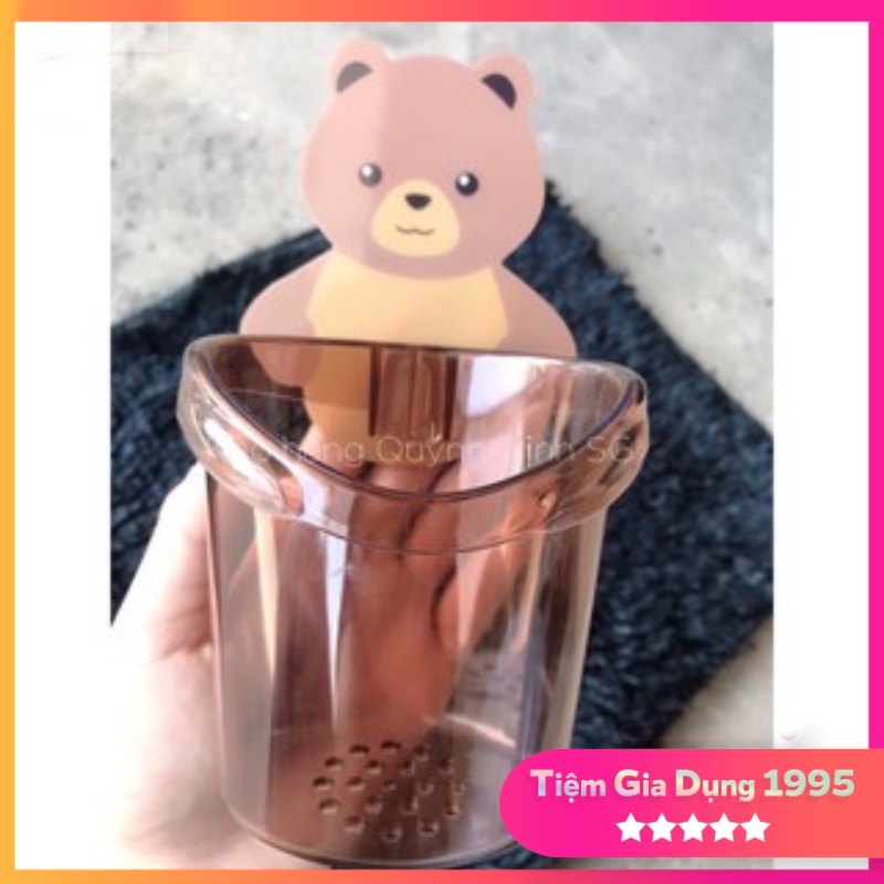 Cốc dán tường để bàn chải đánh răng hình gấu có lỗ thoát nước tiện lợi
