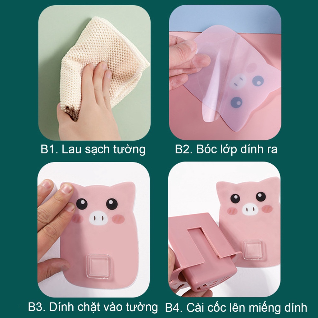 Giới thiệu Cốc dán tường đựng bàn chải đánh răng, kem đánh răng hình heo hồng