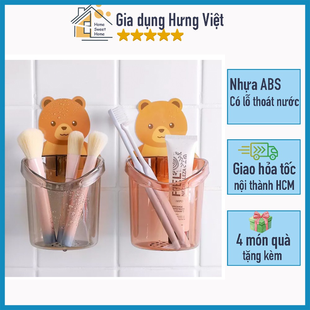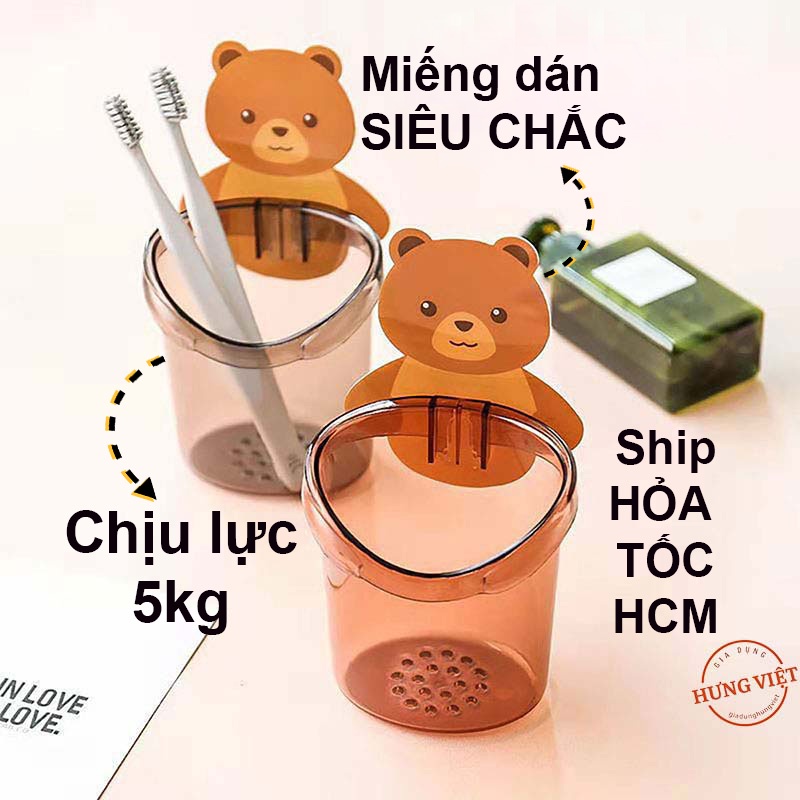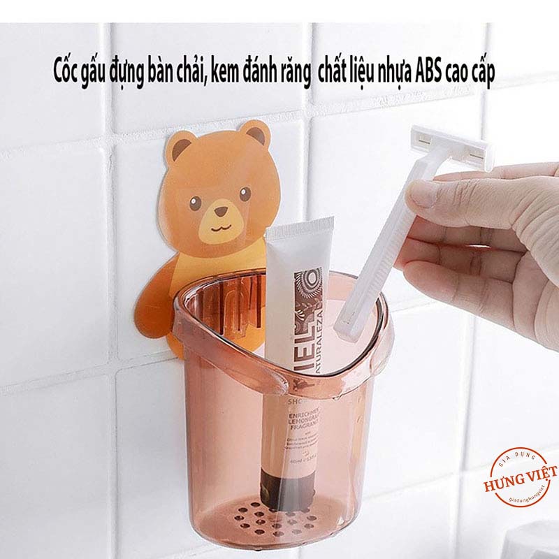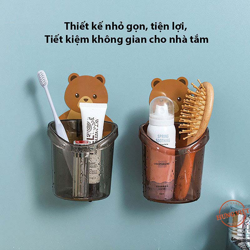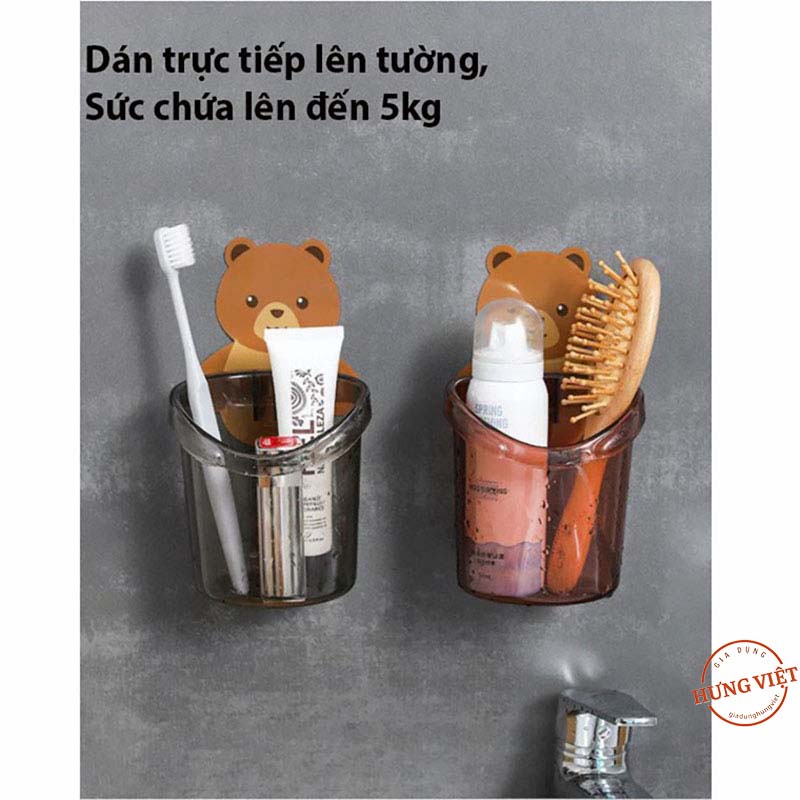 Cốc dán tường hình gấu, đựng đồ đa năng, dán chắc chắn, cắm bàn chải trong phòng [CỐC GẤU]