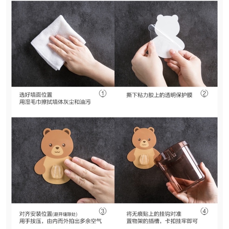 Cốc gấu đựng bàn chải được làm từ chất liệu nhựa ABS cao cấp, an toàn cho người sử dụng🍑Miếng dán chắc chắn, chất liệu nhựa cao cấp, độ bền cao. Dán trực tiếp lên tường, ko cần khoan, sức chứa lên đến 3kg.