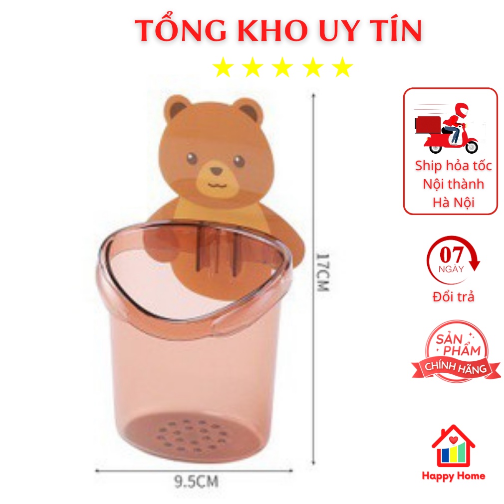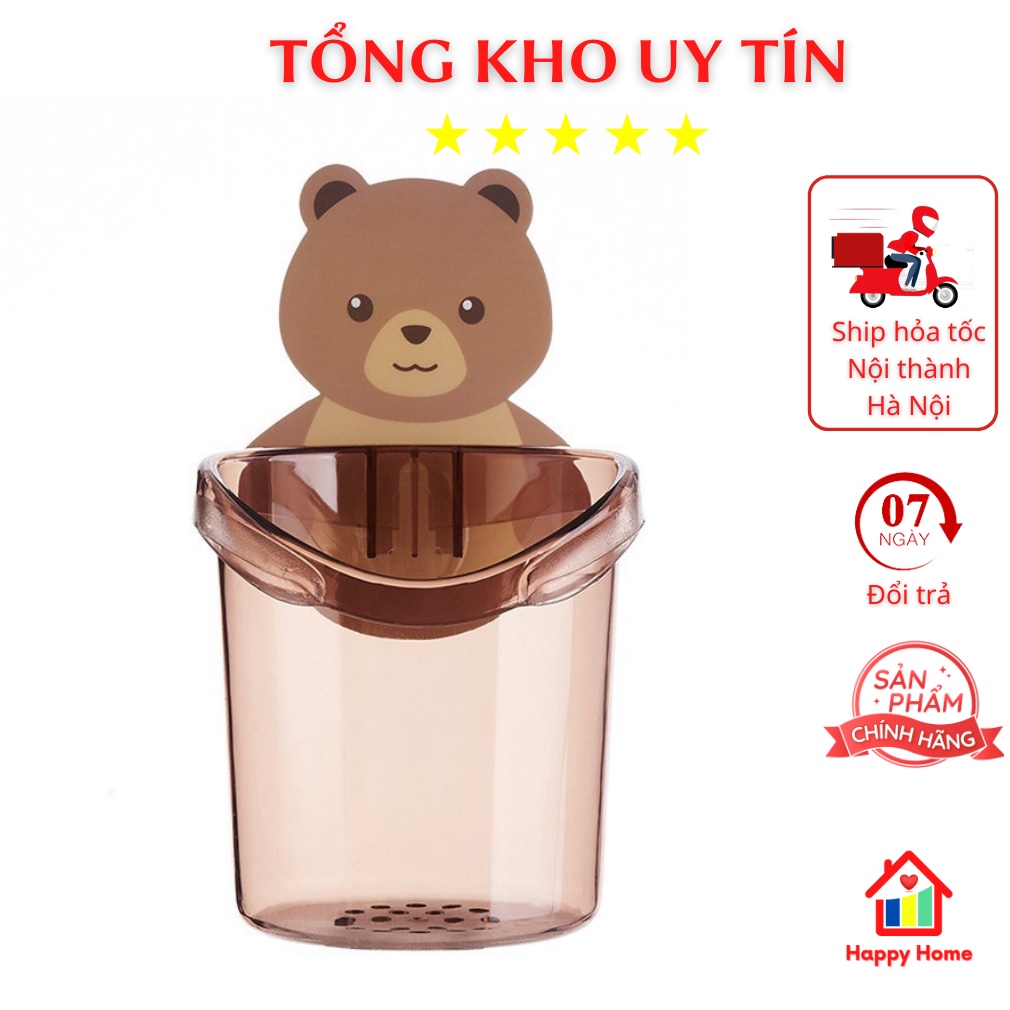 Cốc dán tường nhà tắm hình gấu nâu dễ thương, cốc đựng bàn chải đánh răng