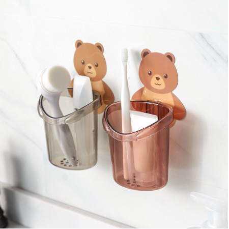 Cốc Dán Tường Nhà Tắm Hình Gấu Nâu Dễ Thương - Cốc Đựng Bàn Chải Đánh Răng