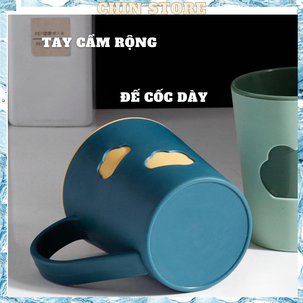 Cốc đánh răng, cốc súc miệng nhà Chin với tay cầm lớn, hai lớp dày, chống vỡ hình đám mây có thể chứa hơn 400ml- Thời buổi hiện đại như 2021 hiện nay, các loại cốc đánh răng bằng sứ hay loại cốc đánh răng trơn mỏng không còn được ưa chuộng đối với các gia đình hay với cá nhân mọi người. Thay vào đó các bà nội trợ trong gia đình đều muốn không gian phòng tắm thật là bắt mắt với nhiều sản phẩm hiện đại. Để làm nổi bật không gian hiện đại đó , Nhiều loại cốc dùng để súc miệng, đánh răng góp phần nhỏ trong không gian phòng tắm mỗi gia đình.