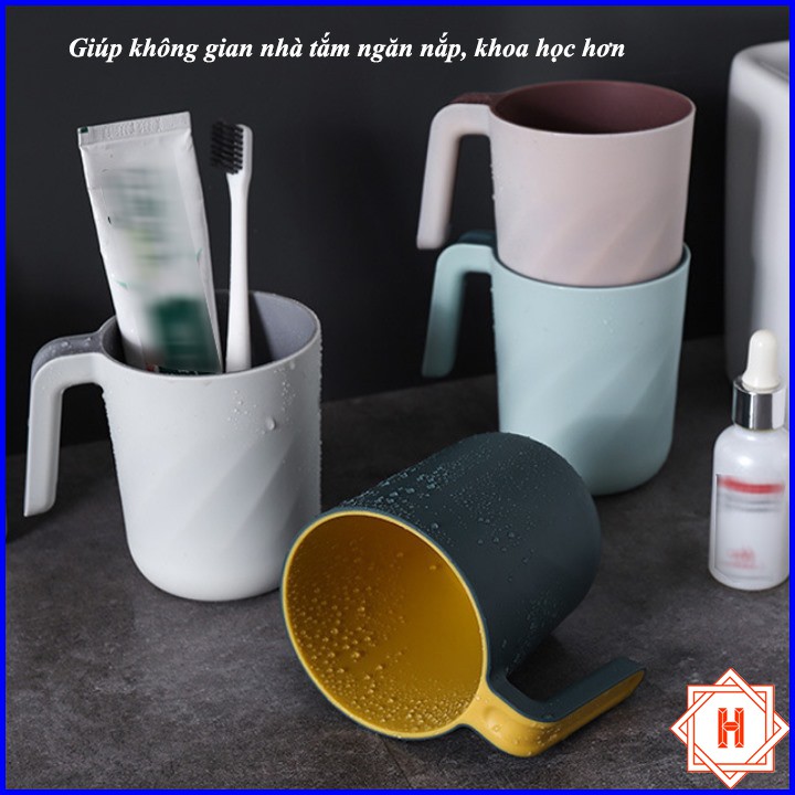 Cốc Đánh Răng Hai Lớp Có Quai Cầm Tiện Dụng { H }