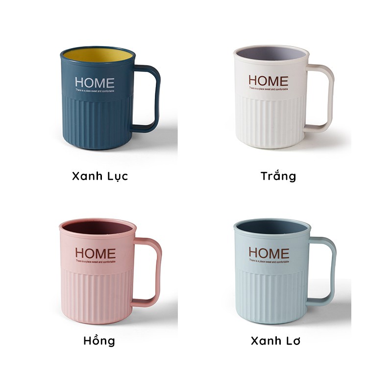 Cốc chứ HOME có quai , được làm từ nhựa PP cao cấp , bền bỉ, chịu va đập tốt , an toàn khi sử dụng , thân thiện với môi trường .