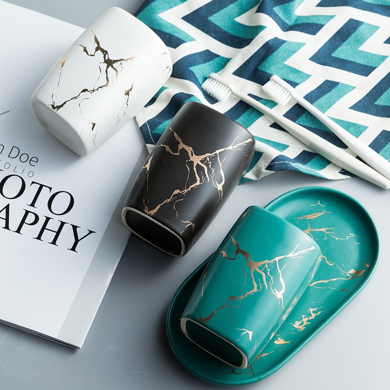 Bộ cốc đánh răng sứ sang trọng,Cốc Đựng Bàn Chải Đánh Răng Bằng Sứ Sáng Tạo Họa Tiết Cẩm Thạch ( k bao gồm khay)