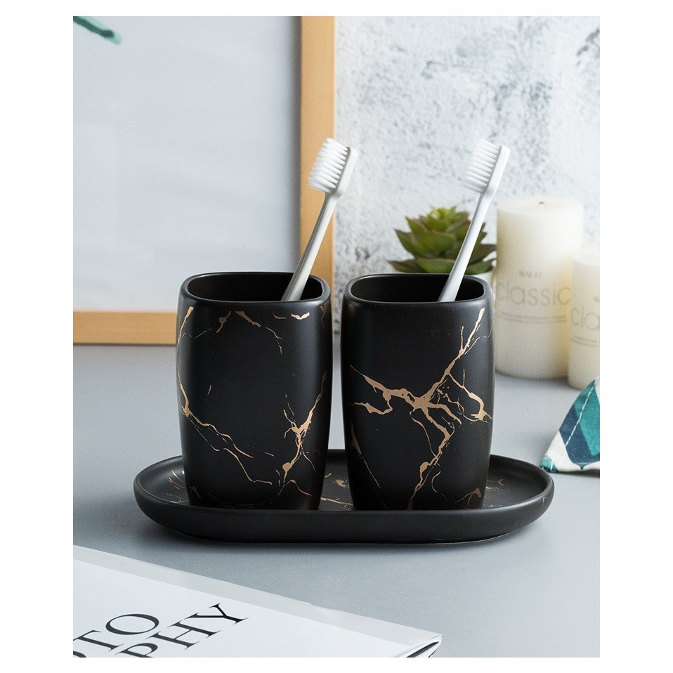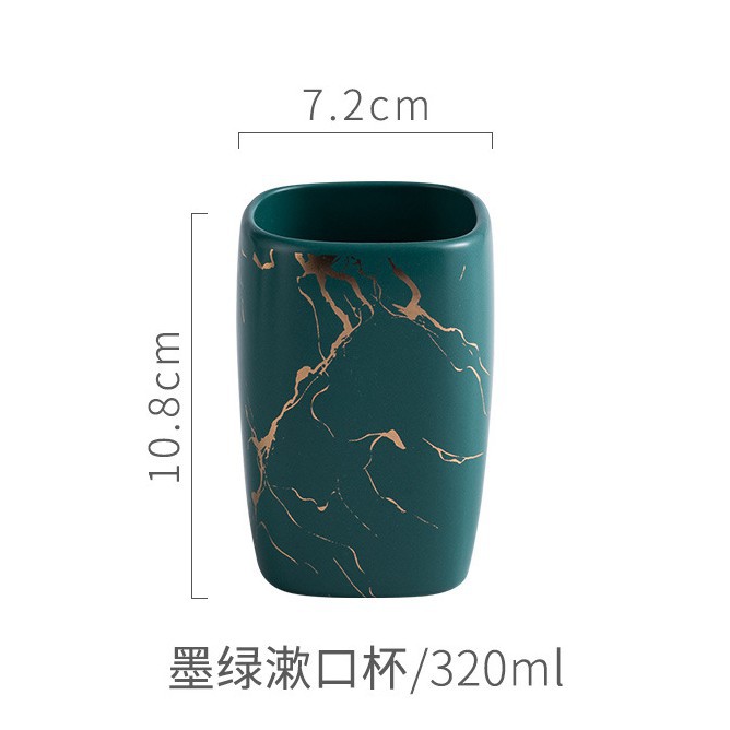 Bộ cốc đánh răng sứ xanh sang chảnh,Cốc Đựng Bàn Chải Đánh Răng Bằng Sứ Sáng Tạo Họa Tiết ( k bao gồm khay)