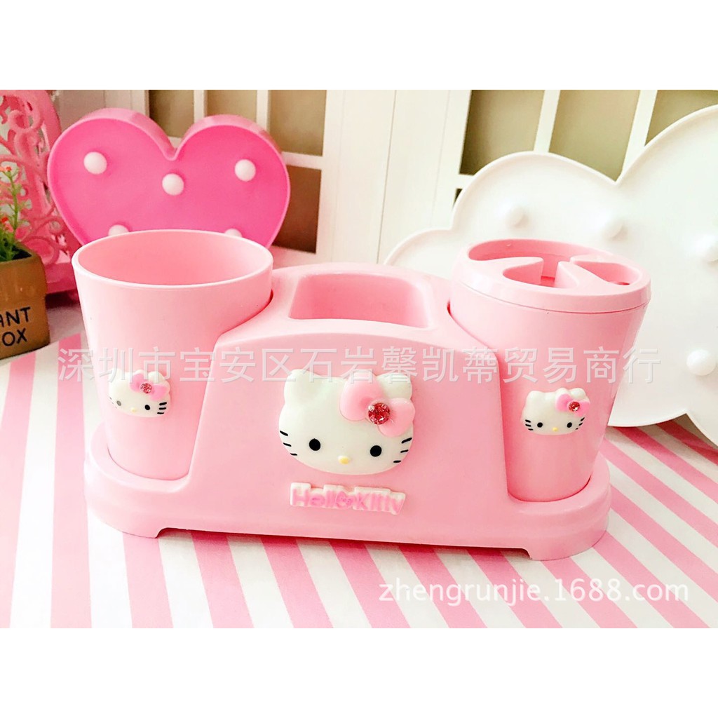 Cốc đánh răng và kệ để đồ 3 chi tiết Hello Kitty ☘☘