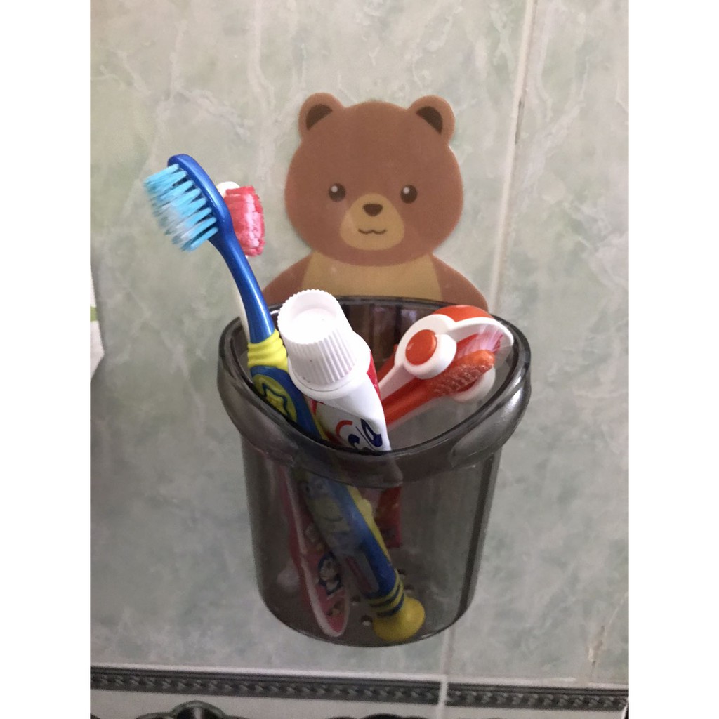 [Siêu phẩm nhà tắm] Cốc để bàn chải dán tường hình gấu