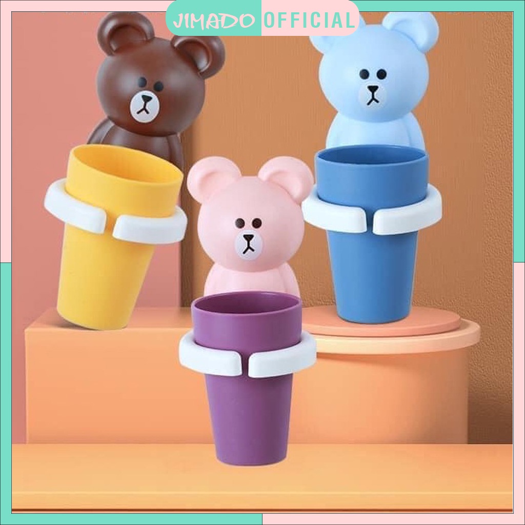 Cốc để bàn chải đánh răng dán tường hình gấu thỏ kute chắc chắn đồ dùng nhà vệ sinh JIMADO S1012
