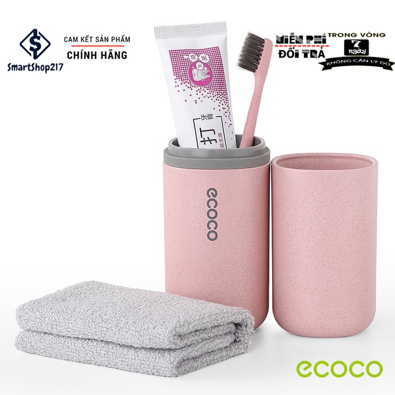 Giới thiệu Cốc Để Bàn Chải Đánh Răng Và Khăn Mặt ECOCO 2 In 1 Làm Từ Rơm Lúa Mì