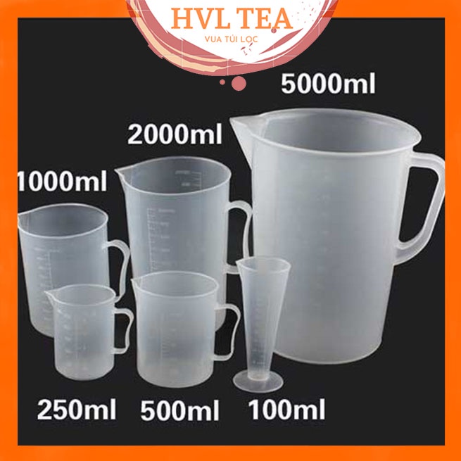 Cốc đong, ca đong định lượng pha chế bằng nhựa trong suốt vạch chia, HVL TEA