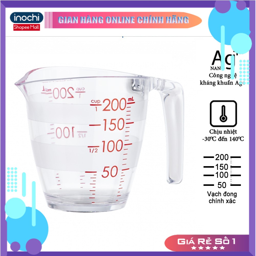 Cốc đong - YOKO INOCHI nhựa định lượng 200ml dung dịch dùng trong nấu ăn pha chế nhựa nguyên sinh kháng khuẩn Ag+ CD=== CAM KẾT CỦA INOCHIVIETNAM ===