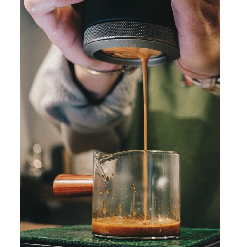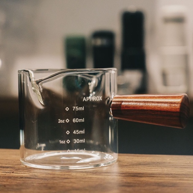 Cốc đong cà phê tay cầm gỗ Ka Home brew 100ml có vạch chia chất liệu thủy tinh thiết kế đẹp mắt sáng tạo - KaHomebrew✴️ Cốc đựng cà phê vạch tay cầm quai gỗ