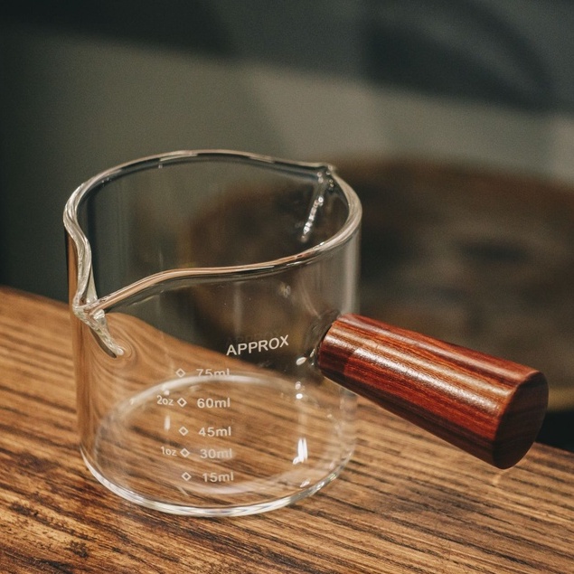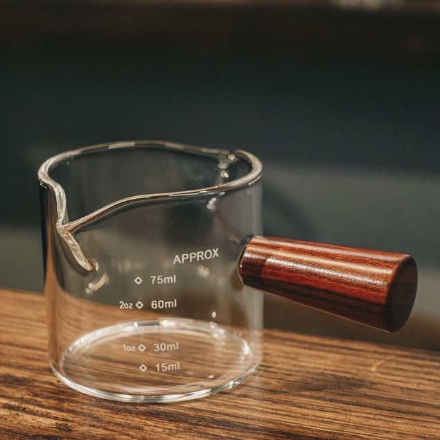 Nhà cửa & Đời sống > Dụng cụ nhà bếp > Dụng cụ pha trà, cà phê || Cốc đong cà phê tay cầm gỗ Ka Home brew 100ml có vạch chia chất liệu thủy tinh thiết kế đẹp mắt sáng tạo - KaHomebrewCòn hàng