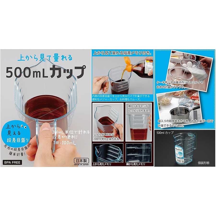 Cốc đong chia vạch 500ml trong suốt Inomata xuất xứ Nhật Bản chất liệu nhựa PS cao cấp sạch và bền- 109693