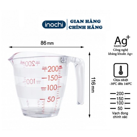 Nhà cửa & Đời sống > Dụng cụ nhà bếp > Dụng cụ đo lường || Cốc đong chia vạch INOCHI Yoko 200ml hàng xuất NHẬT chịu lực tốt và chịu nhiệt nhựa SAN nguyên sinh không chứa BPCòn hàng