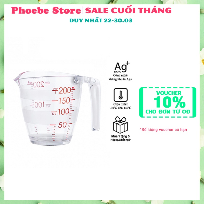 Cốc đong - YOKO INOCHI nhựa định lượng 200ml dung dịch dùng trong nấu ăn pha chế nhựa nguyên sinh kháng khuẩn Ag+ CD