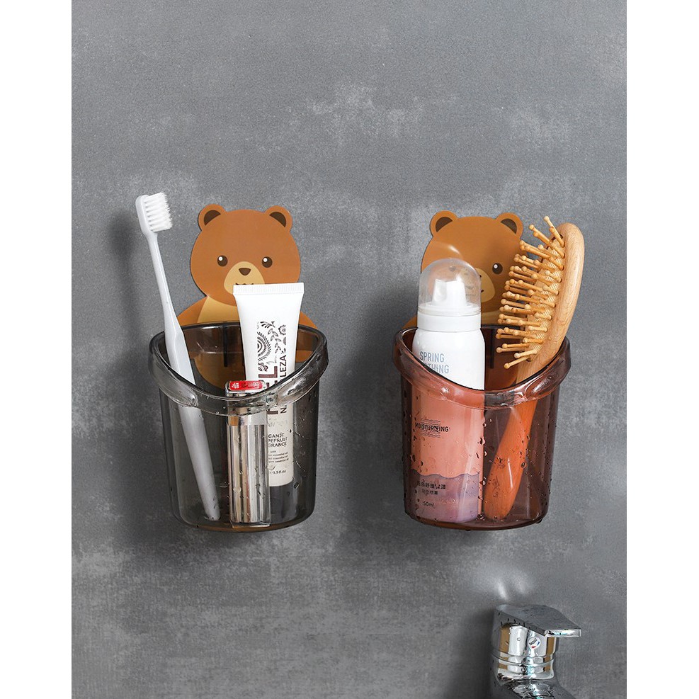 Cốc Đựng Bàn Chải Đánh Răng, kem Đánh Răng Gắn Tường Hình Gấu Dễ ThươngMàu sắc: xám, nâu
