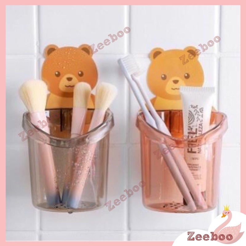 Cốc đựng bàn chải đánh răng, mỹ phẩm, đồ dùng phòng tắm dán tường hình gấu, chịu lực lên đến 5kg, siêu chắc, tiện dụng