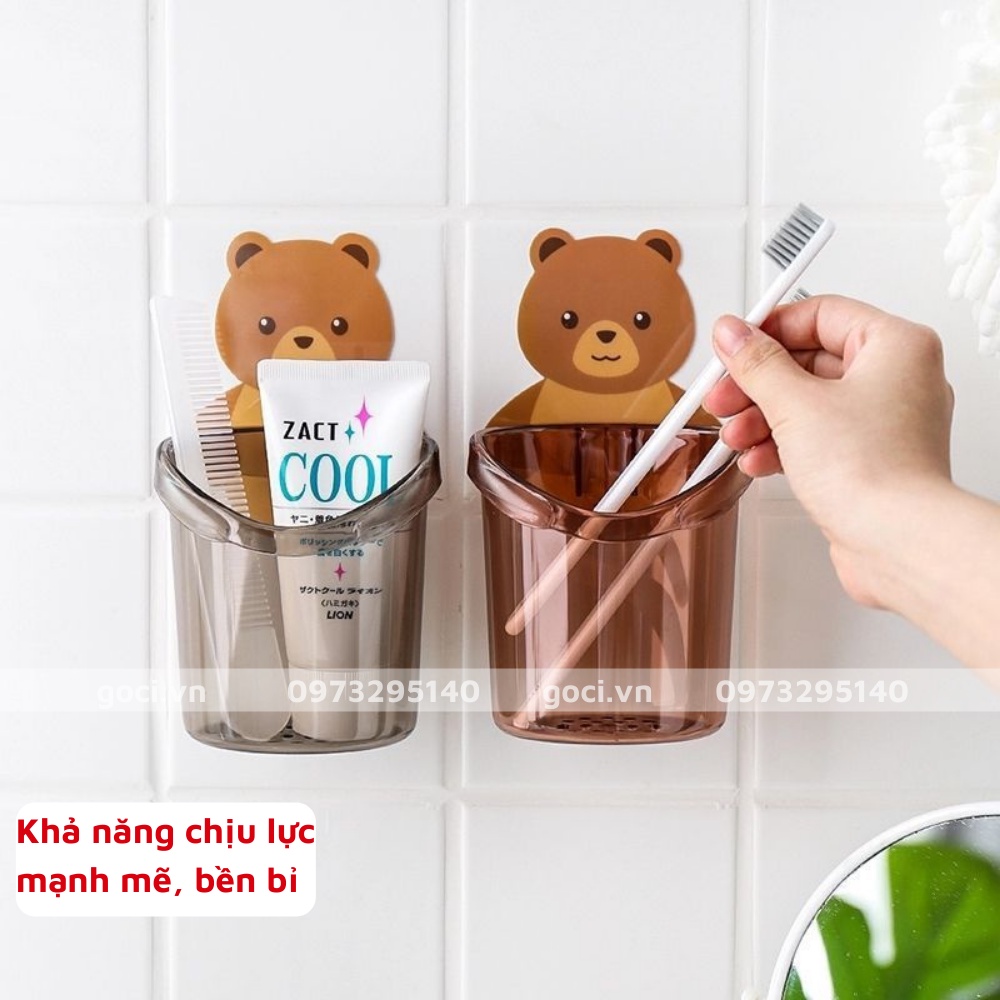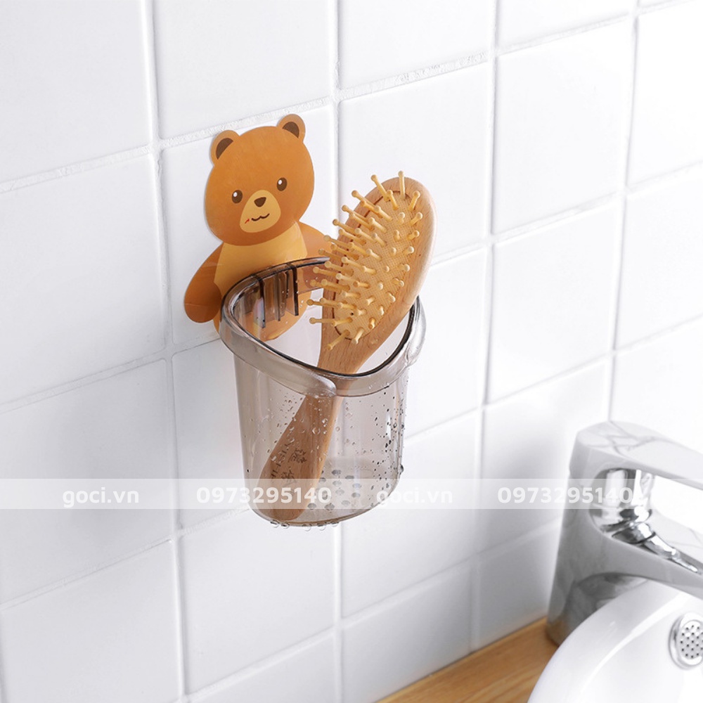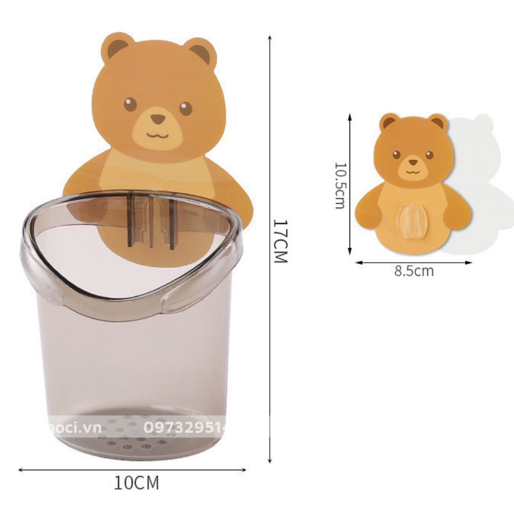 Cốc đựng bàn chải đánh răng hình gấu dán tường đồ dùng trong phòng tắm cho bé có lỗ thoát nước đa năng tiện lợi