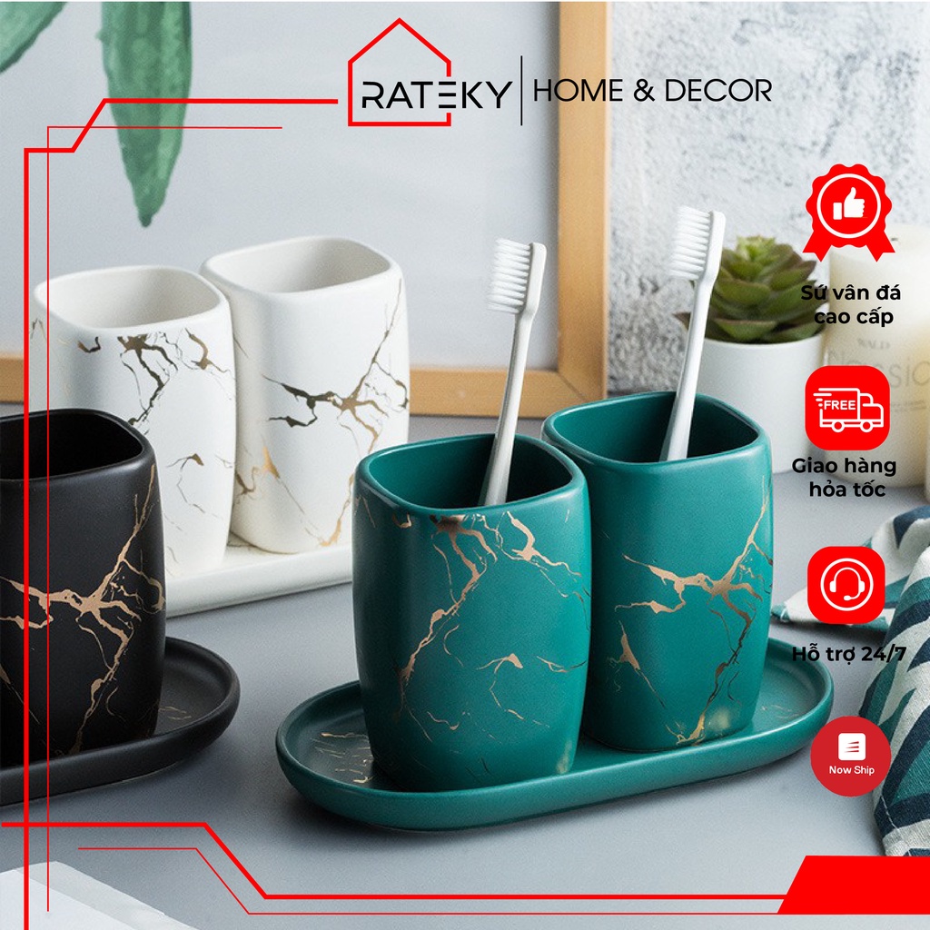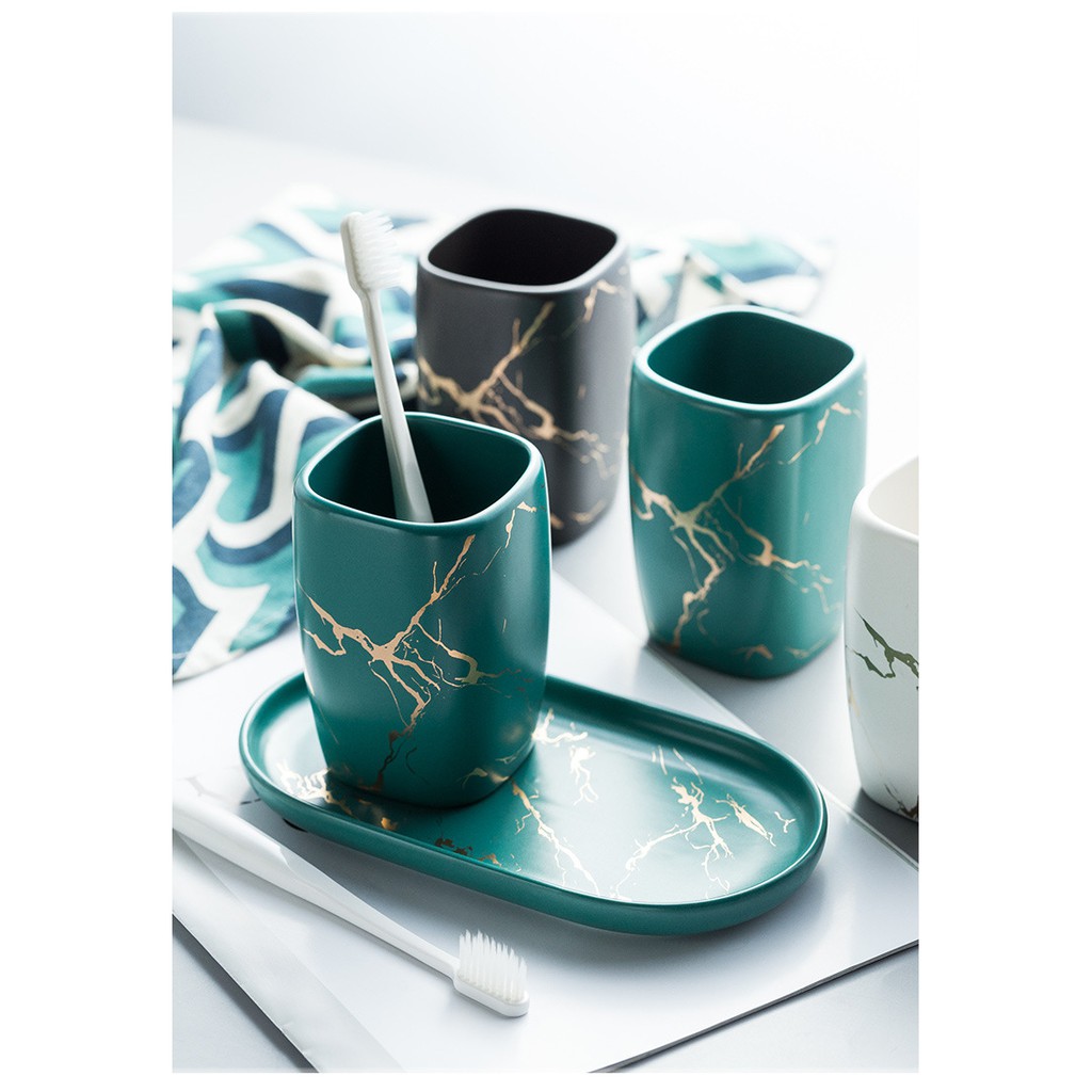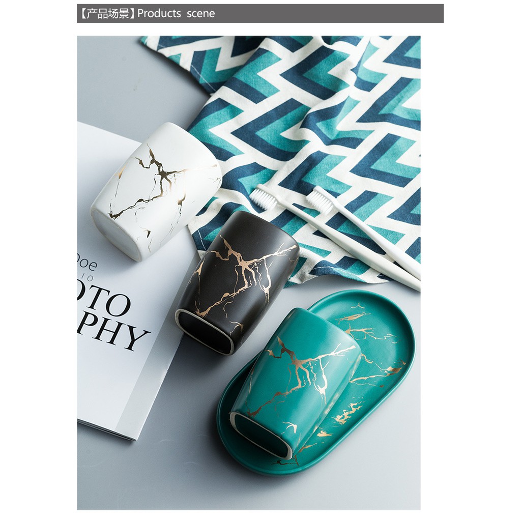 Nhà cửa & Đời sống > Đồ dùng phòng tắm > Kệ đựng bàn chải, kệ nhả kem đánh răng || Cốc đựng bàn chải đánh răng 300ml Gốm Sứ Vân Đá Cẩm Thạch Cao CấpCòn hàng