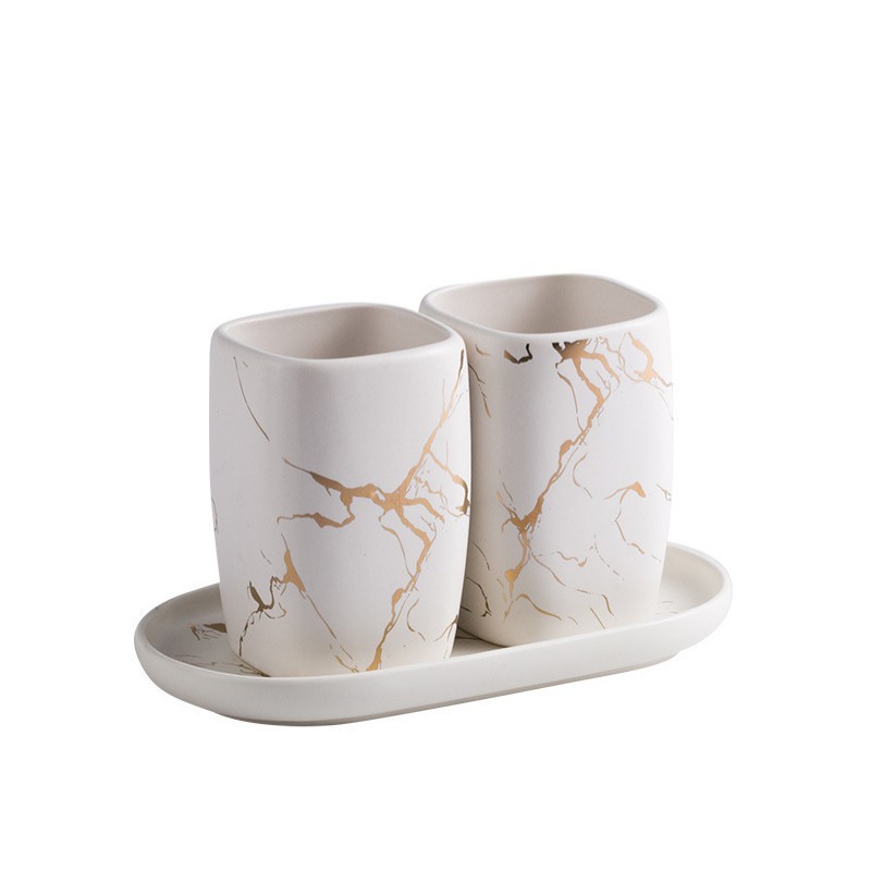 Cốc Đựng Bàn Chải Đánh Răng 300Ml, Khay Sứ Vân Đá Cẩm Thạch Cao Cấp Trong Khách Sạn