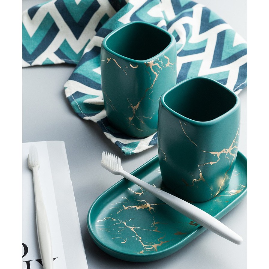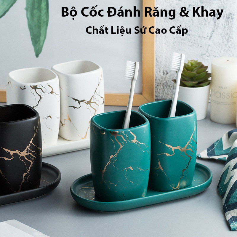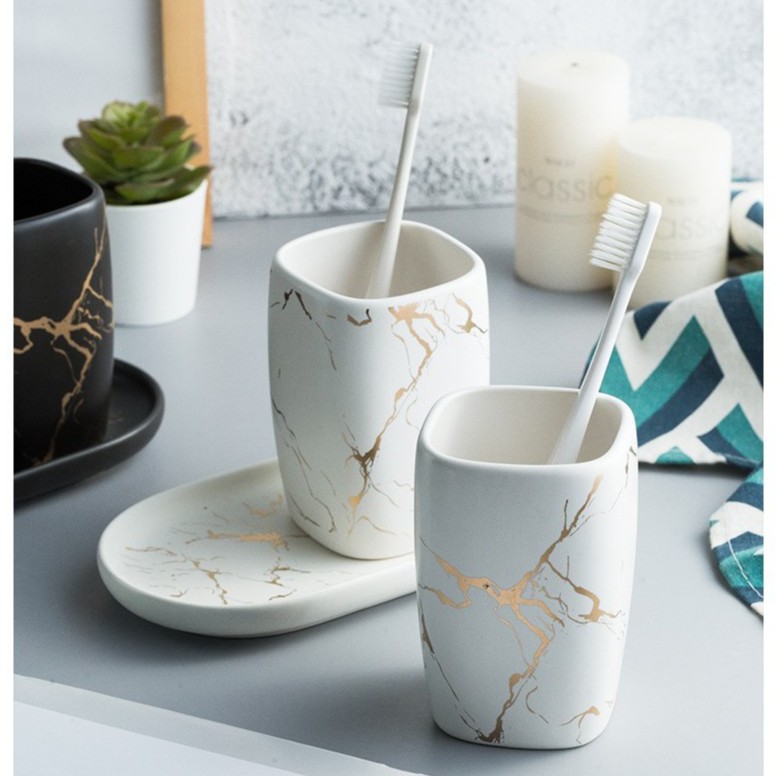 Nhà cửa & Đời sống > Đồ dùng phòng tắm > Kệ đựng bàn chải, kệ nhả kem đánh răng || Bộ cốc đựng bàn chải đánh răng bằng sứ vân đá cao cấp CS06Còn hàng