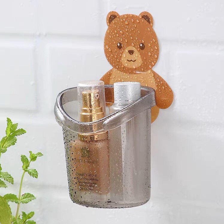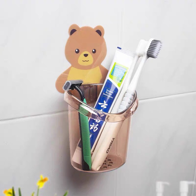 Cốc Đựng Bàn Chải Đánh Răng Hình Gấu Dán Tường, Cốc Gấu Nâu Đựng Đồ Đa Năng Tiện Lợi Dễ Thương