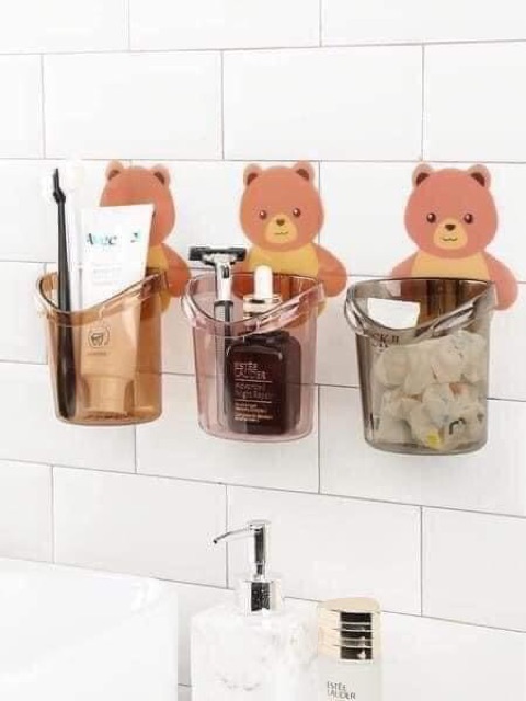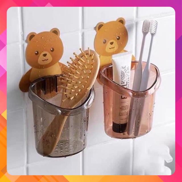 CỐC ĐỰNG BÀN CHẢI HÌNH GẤUCốc hộp gắn tường hình gấu - Cốc dán tường đựng bàn chải đánh răng tiện dụng đáng yêu