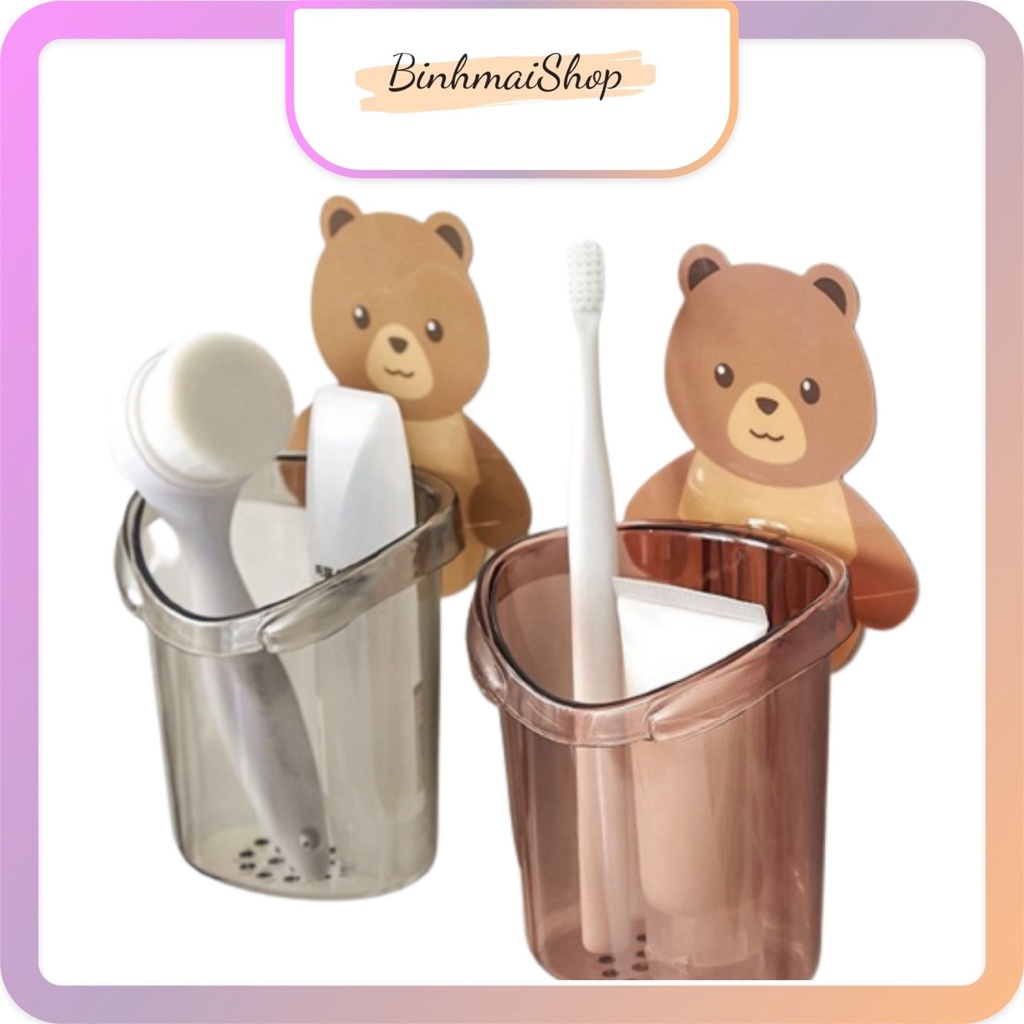 Cốc Đựng Bàn Chải Kem Đánh Răng Treo Tường Hình Gấu