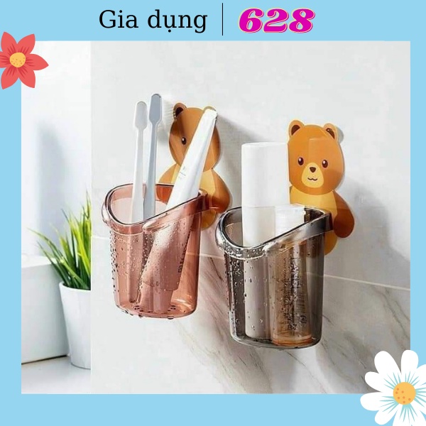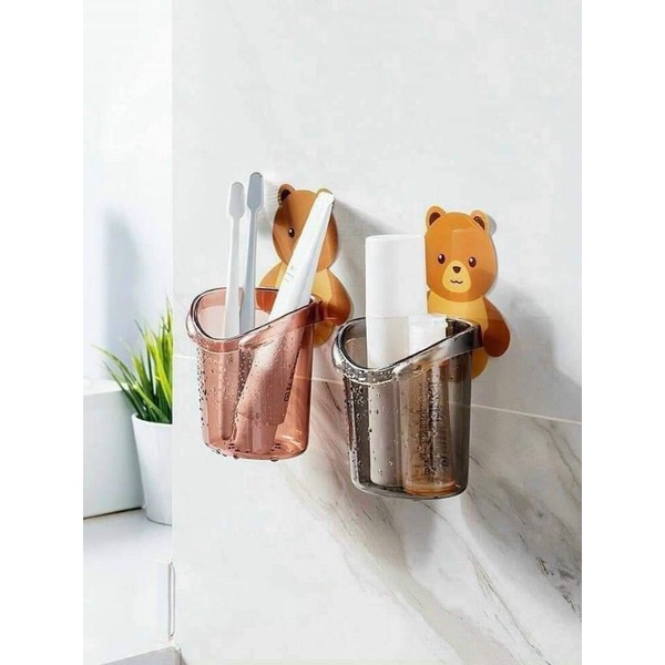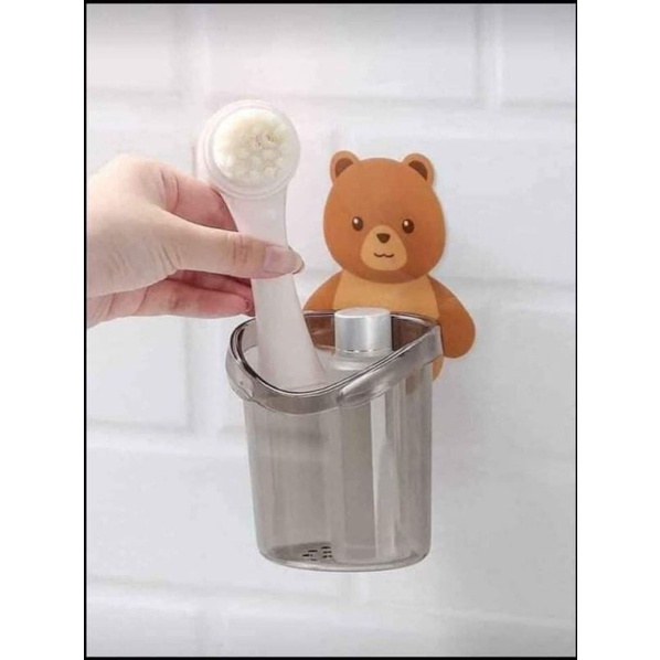 Cốc đựng bàn chải kem đánh răng dán tường kiểu con gấu dễ thương cốc dánh tường đựng đồ dùng thông minh
