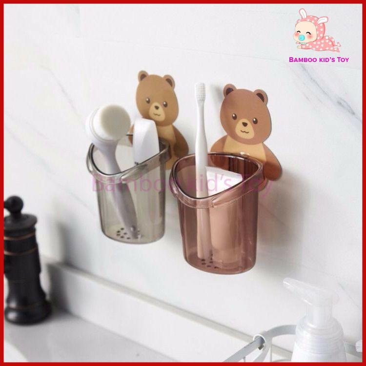 Cốc Đựng Bàn Chải, Kem Đánh Răng Hình Gấu Cute Dính Tường T2