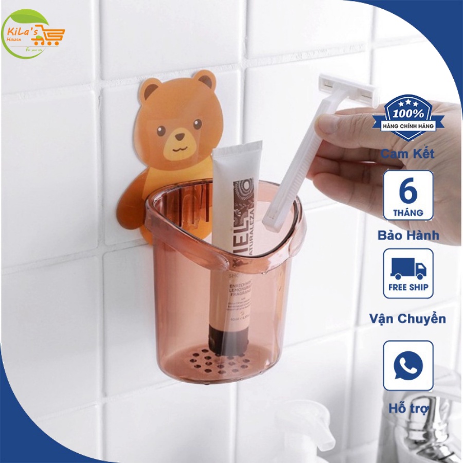 Cốc đựng bàn chải kem đánh răng hình gấu dán tường siêu dính - Ly dán tường nhà tắm đựng bàn chải