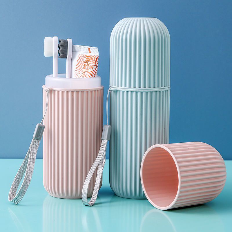 ♘ Hũ Hộp Đựng Bàn Chải Và Kem Đánh Răng Kiểu Tròn Có Vân S8 Phù hợp cho chuyến đi gia đình 3-4 thành viên
